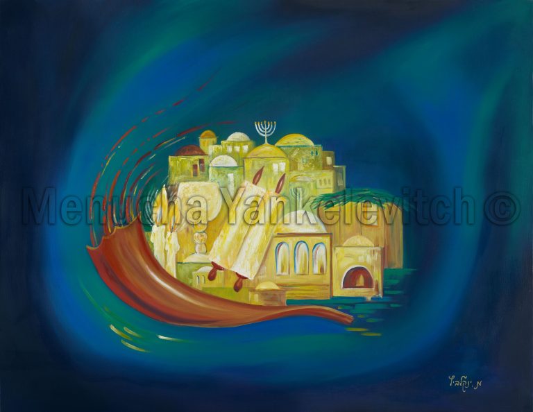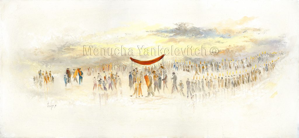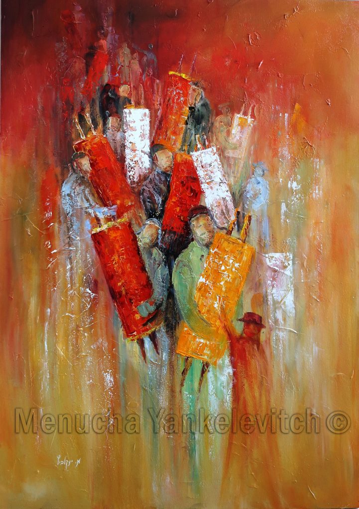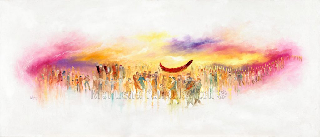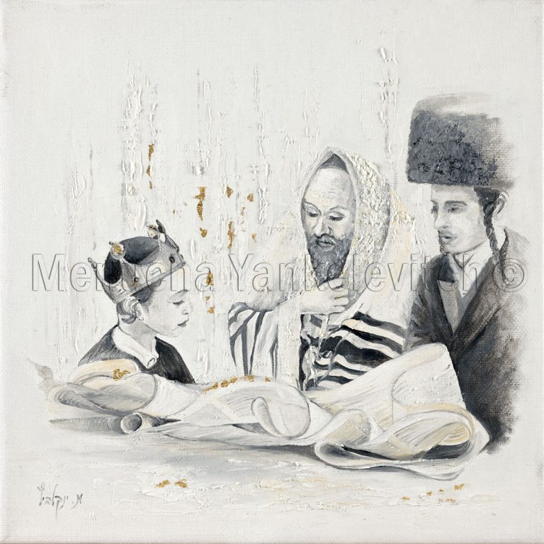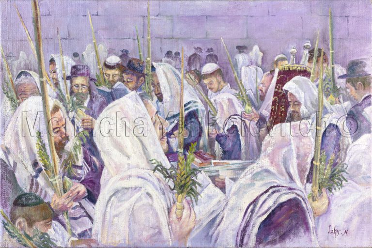 ON A PERSONAL NOTE – The richness and depth of Jewish life has inspired me to portray various situations pertaining to our hallowed Jewish traditions with paint-brush and color. When painting such scenes, I feel drawn into the special moment that is depicted and it is as though I experience it here and now.