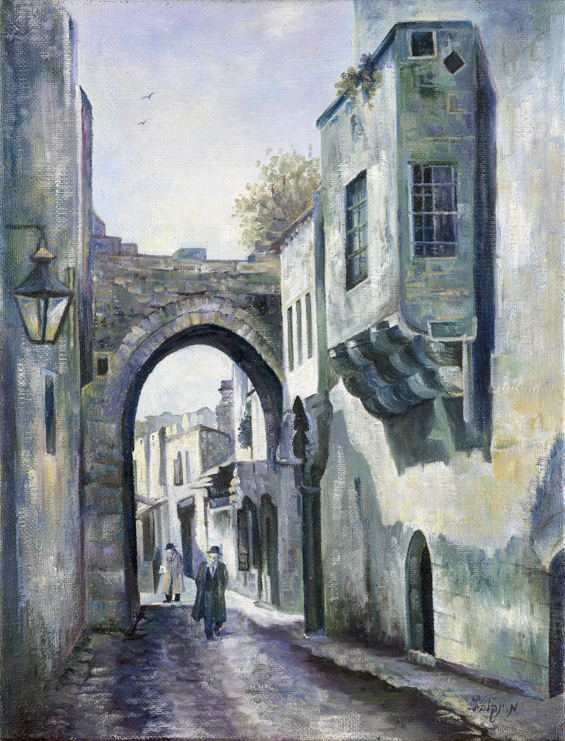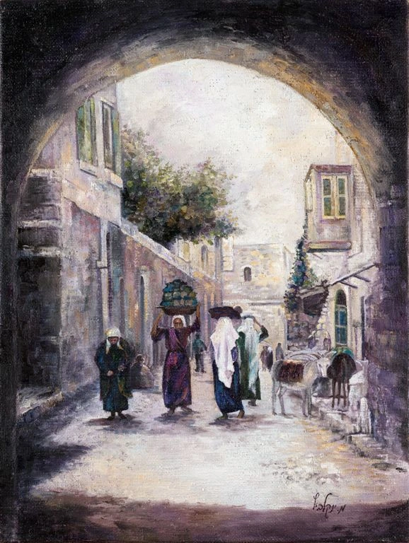 ציורי שמן מרגשים המתארים את סמטאות האבן של העיר העתיקה,