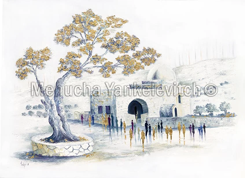 תוספת עלי זהב משדרגת עוד יותר את יצירת האמנות ומוסיפה אלמנט יוקרתי וזוהר. איכותו המנצנצת מוסיפה תחושת שפע ומדגישה את חשיבותו של קבר רחל כמקום קדוש.