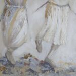 Artwork Overview: A deeply moving piece featuring a line of seven figures—Hasidim and children—linked arm-in-arm in a traditional “brothers’ dance.” Dressed in pure, luminous white garments that radiate light and inner joy, the figures convey a powerful message of unity and intergenerational continuity. This painting captures the profound, direct connection between man and his fellow, and man and his Creator.