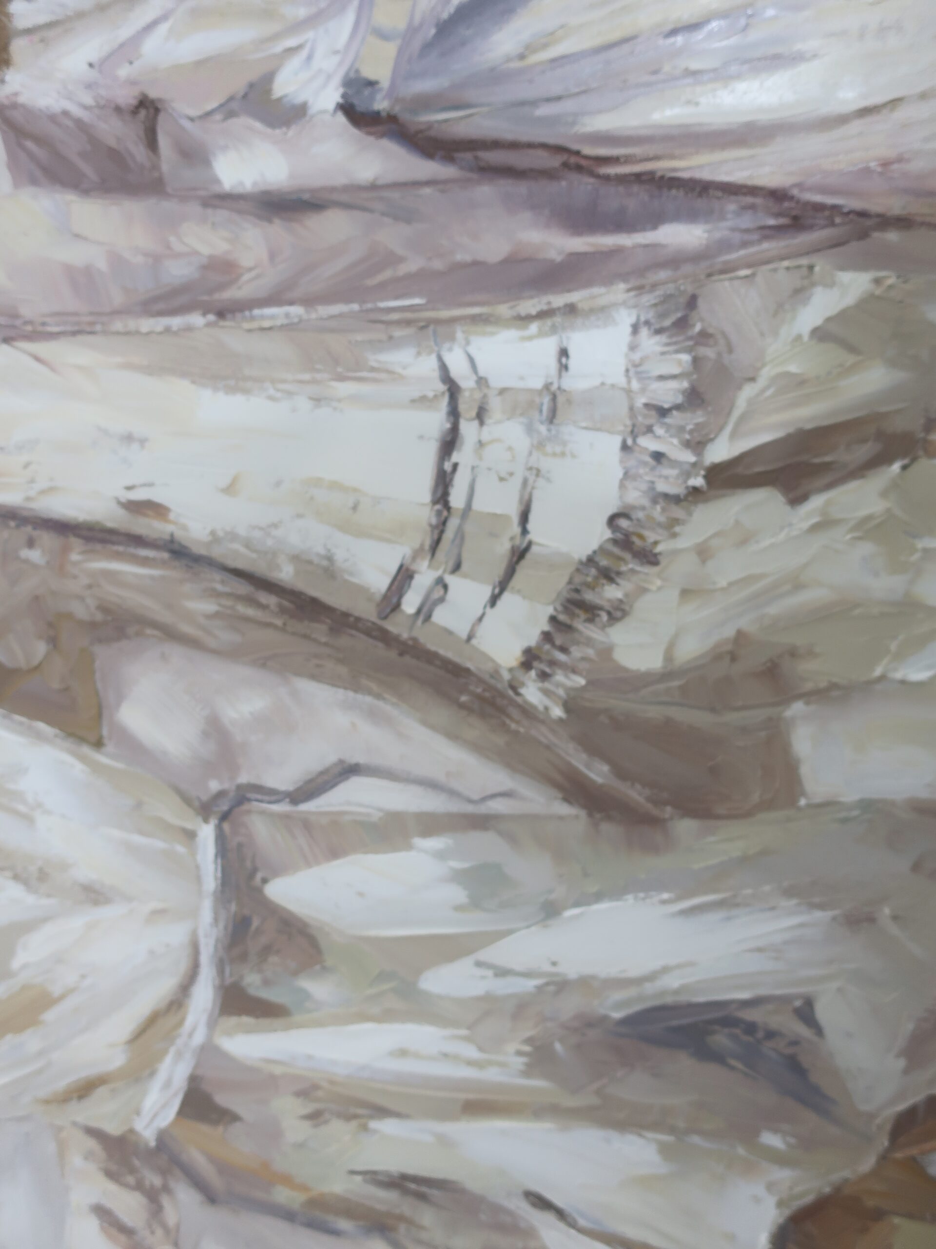 - Medium: Oil on canvas, created with palette knife and brush techniques.