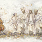 Artwork Overview: This powerful and moving piece captures the perfect harmony between music and dance. At the center, a group of Hasidim and a young boy are locked arm-in-arm in a dance of pure devotion (Devekut). They are flanked by a unique musical ensemble: a cellist on the left and a drummer on the right. The composition creates a literal “envelope of sound” around the dancers, making the viewer feel as if they are standing right in the heart of the circle.